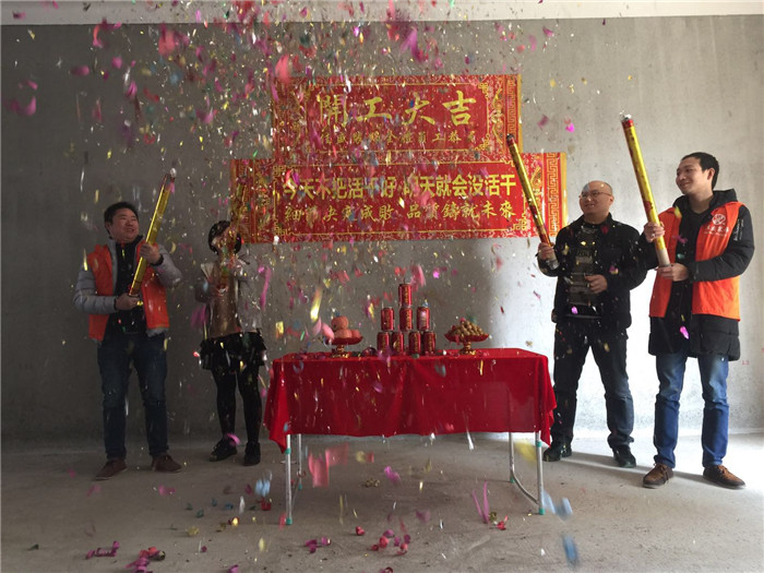 業主、設計師、項目經理開工合影: